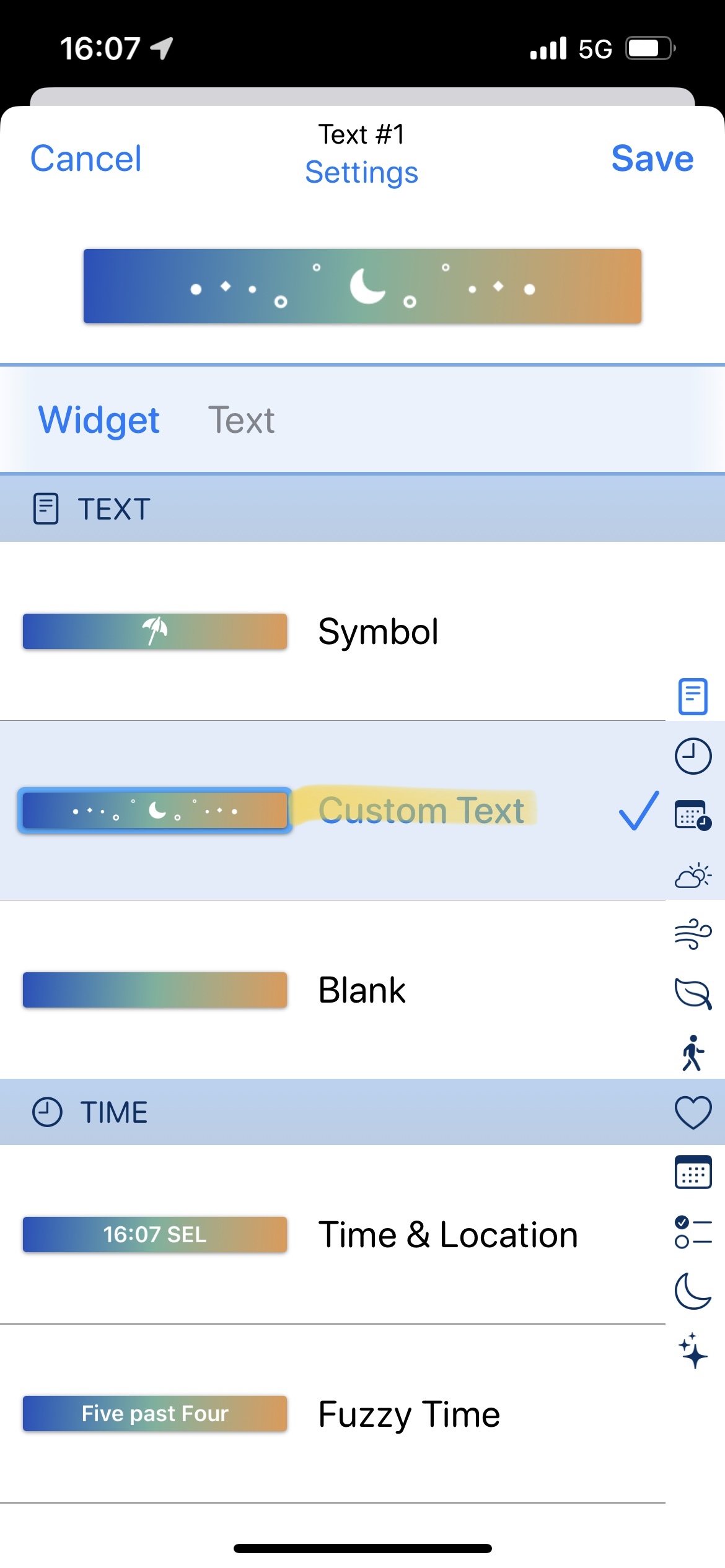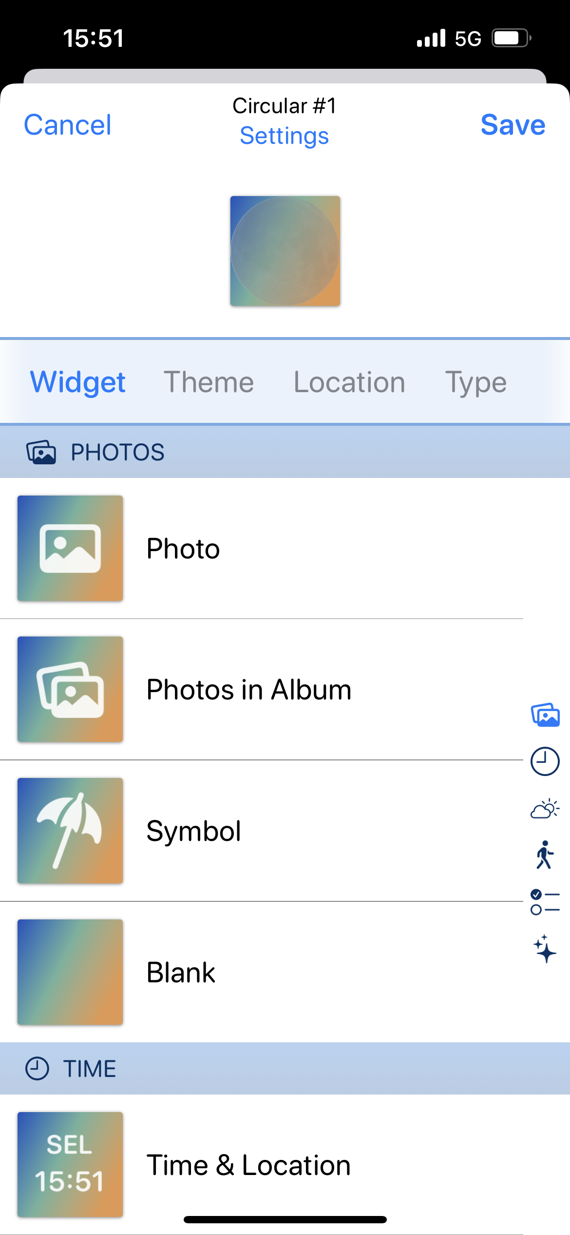 Widget 에서 맨 밑으로 내리면 있는 Moon Phase 선택