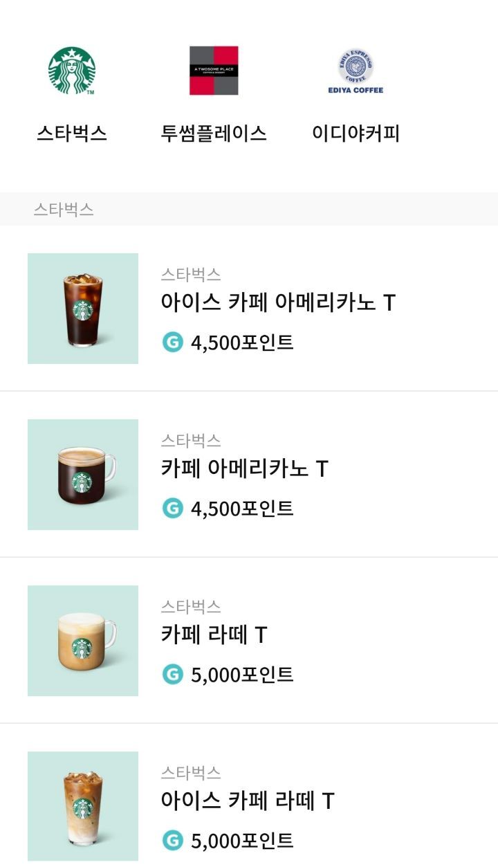 플러스 살 수 있는 기프티콘은 요렇게 1대1 비율 정가 그 잡채니까 열심히 걷기도 하고 기프티콘도 받아가면 이것이 진정한 일석이조다