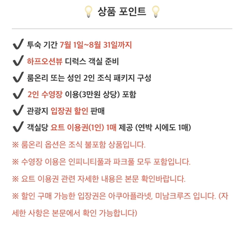 2. 아쿠아플라넷, 요트이용권, 미남크루즈 등