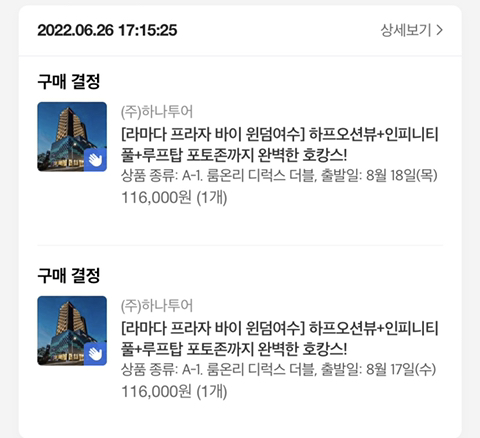 2박 3일 디럭스 더블 하프오션뷰 총 232,000원 이었어!