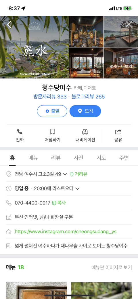 있는데 그게 넘 좋았어!! 여수 바다 영상이 쫙 펼쳐지는…