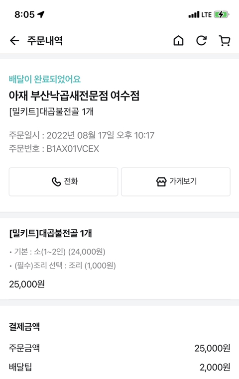 숙소에서 쐬주 안주 하고 싶어서 시켰는데
