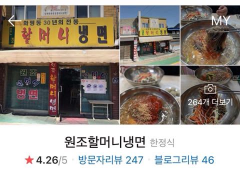 거기보다 여기가 더 맛있었어. 거기는 깨를 너무 많이 뿌려줘서 새콤한 냉면국물 맛보다 깨향이 더 강해서 내취향이 아니더라고)
