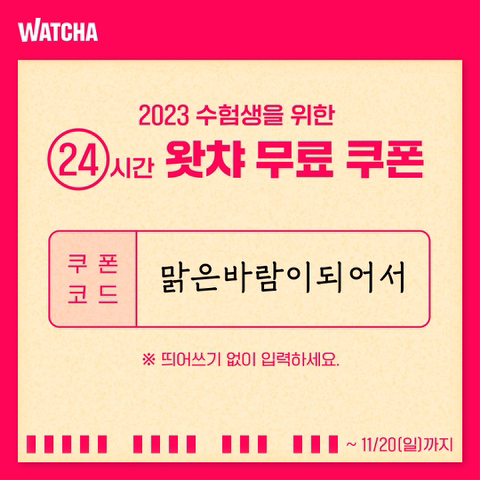∙ 링크 접속 ▶︎ watcha.com/coupon/register
