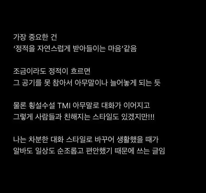 [기타]횡설수설 말하는 습관 고치는 방법 작성자DKZ 박재찬|작성시간22.08.31|조회수16,358 목록 댓글 10 글자크기 작게가 글자크기 크게가 다음검색 현재 게시글 추가 기능 열기 북마크 공유하기 신고 센터로 신고 댓글 댓글 10 댓글쓰기 답글쓰기 댓글 리스트 작성자한설 | 작성시간 22.08.31 와 나한테 진짜 필요했던 글임.. 작성자이것저것 보장하라 | 작성시간 22.08.31 나쁜 예 나잔아 완전잠깐의 침묵 좋은 말이다 작성자냥먄먕 | 작성시간 22.08.31 글 고마워! 작성자엘지전자 | 작성시간 22.09.01 나다나다 ㅠㅠ 작성자최후 | 작성시간 22.09.11 핵띵팁... 감사합니다... 댓글 전체보기
