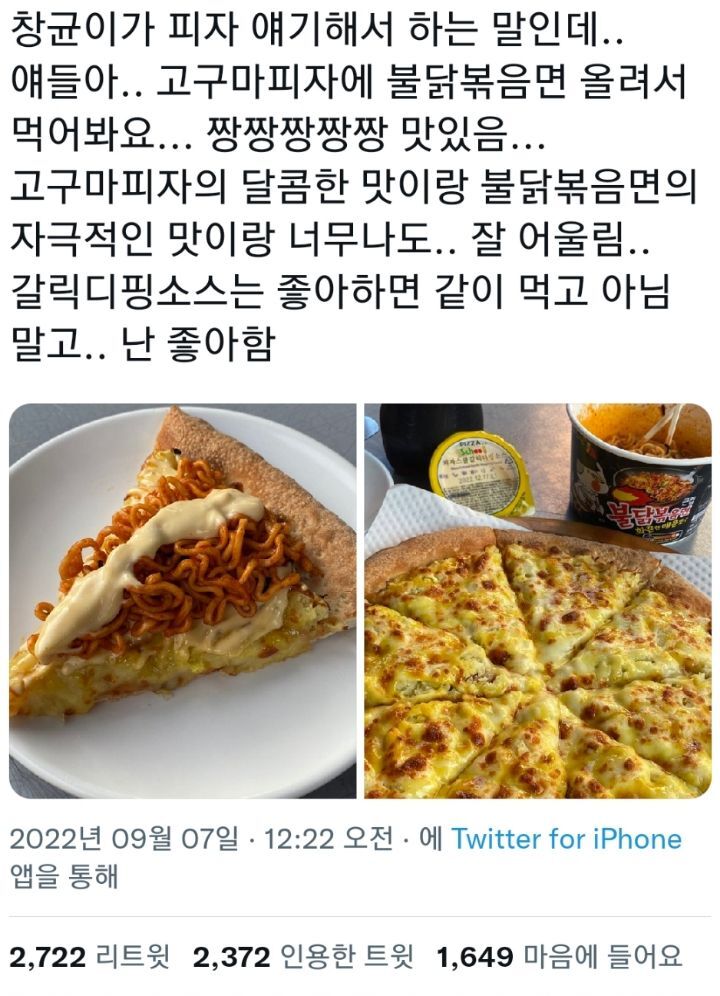 작성시간 22.09.08 까르보네피자도 추천합니다.. 걍 극락직행티켓
