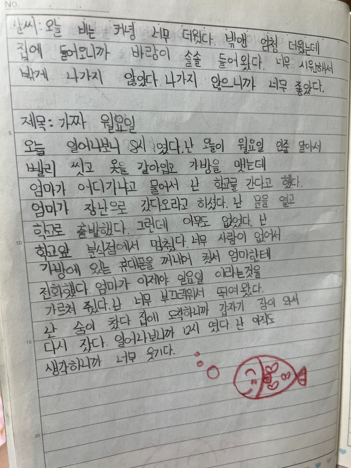 우리 동네 목욕탕 [기타]에스파 윈터 초등학생 3학년 때 쓴 일기 작성시간22.09.08|조회수77,698 목록 댓글 37 글자크기 작게가 글자크기 크게가 어릴 때 부터 강하게 자란 윈터깨알같은 피드백 다음검색 현재 게시글 추가 기능 열기 북마크 공유하기 신고 센터로 신고 댓글 37 댓글 리스트 작성시간 22.09.09 ㅋㅋㅋㅋㅋㅋㅋㅋㅋㅋㅋㅋㅋㅋㅋㅋㅋ ㄱㅇㅇ 작성시간 22.09.09 느낌표ㅋㅋㅋㅋㅋㅋㅋㅋ귀여워 작성시간 22.09.21 ㄱㅇㅇ 작성시간 22.09.23 3학년이 이렇게 의젓하게 글을쓰다니... 갓기엿네 작성시간 22.09.24 귀여워어ㅜㅜ 카페 방문해 더 많은 댓글 만나기!