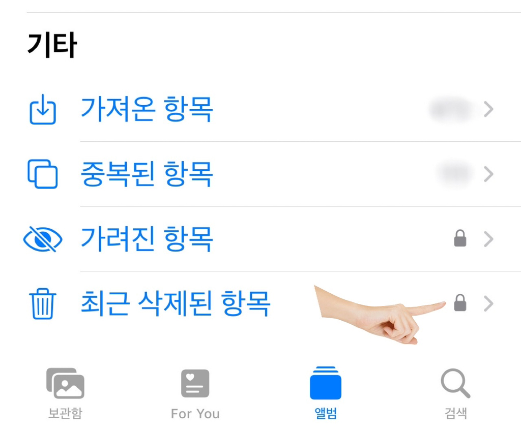 ■ 사진 앱 프라이버시 강화 : iOS 16 업데이트 이후 사진 앱의 가려진 항목, 최근 삭제된 항목에 접근하려면 페이스ID 또는 터치ID로 인증한 후 열람이 가능하다.