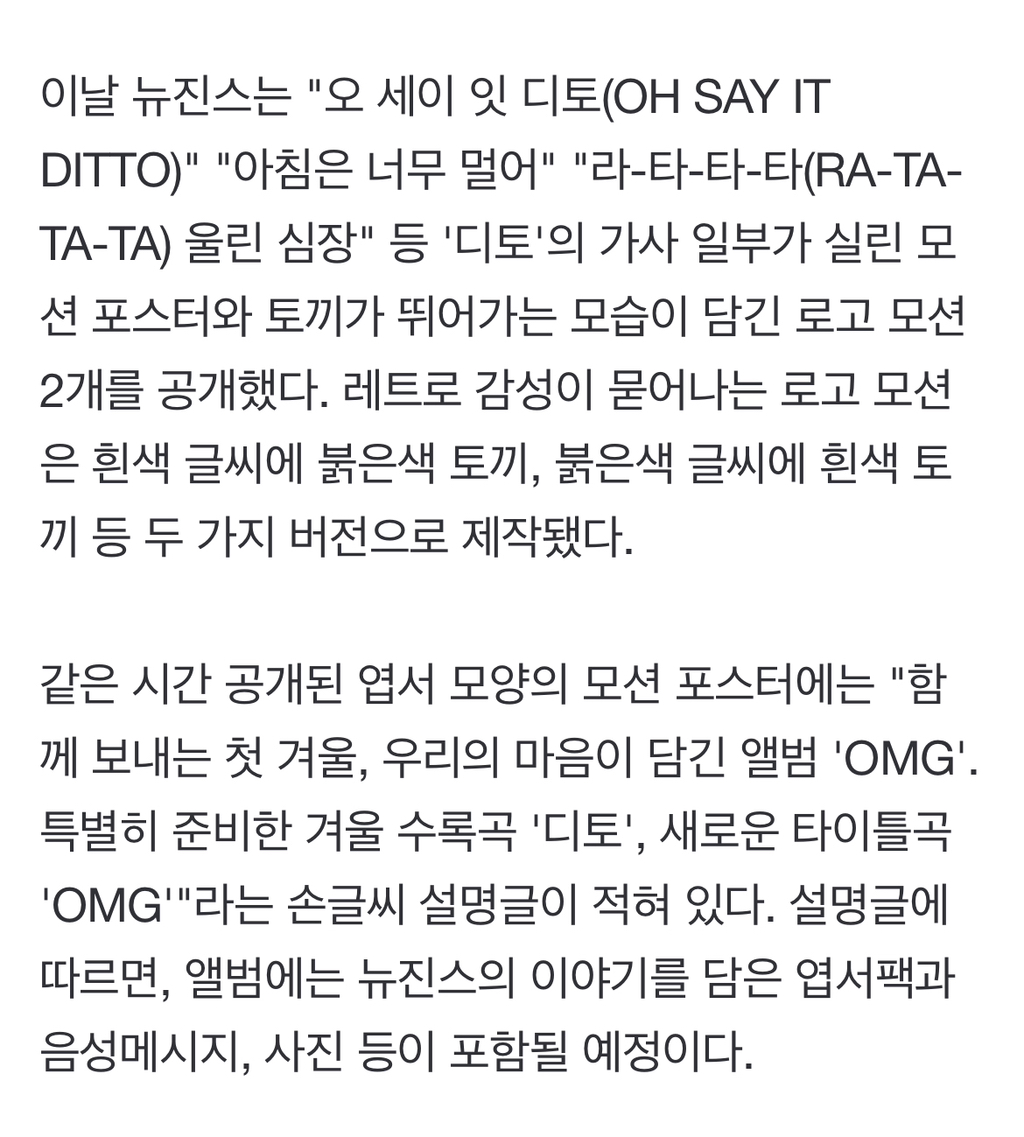 우리 동네 목욕탕 [기사]"라타타타 울린 심장"…뉴진스, 19일 겨울싱글 '디토' 공개 작성시간22.12.12|조회수4,699 목록 댓글 3 글자크기 작게가 글자크기 크게가 《 우리 동네 목욕탕 / 구교환 》 전문 출처로https://n.news.naver.com/entertain/article/003/0011586994 다음검색 현재 게시글 추가 기능 열기 북마크 공유하기 신고 센터로 신고 댓글 3 댓글 리스트 작성시간 22.12.12 아싸~ 작성시간 22.12.12 존나기대 작성시간 22.12.12 꺅 카페 방문해 더 많은 댓글 만나기!