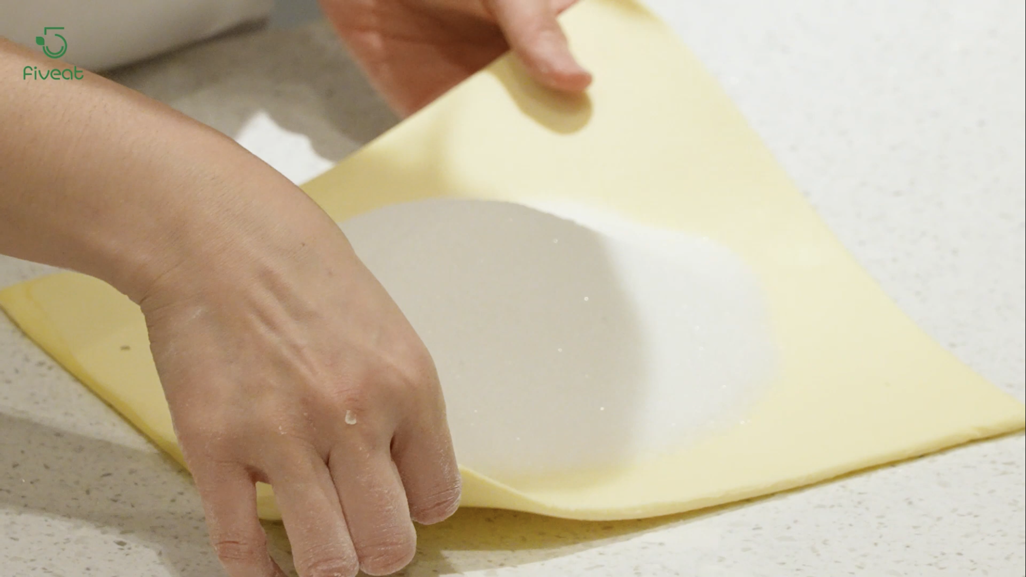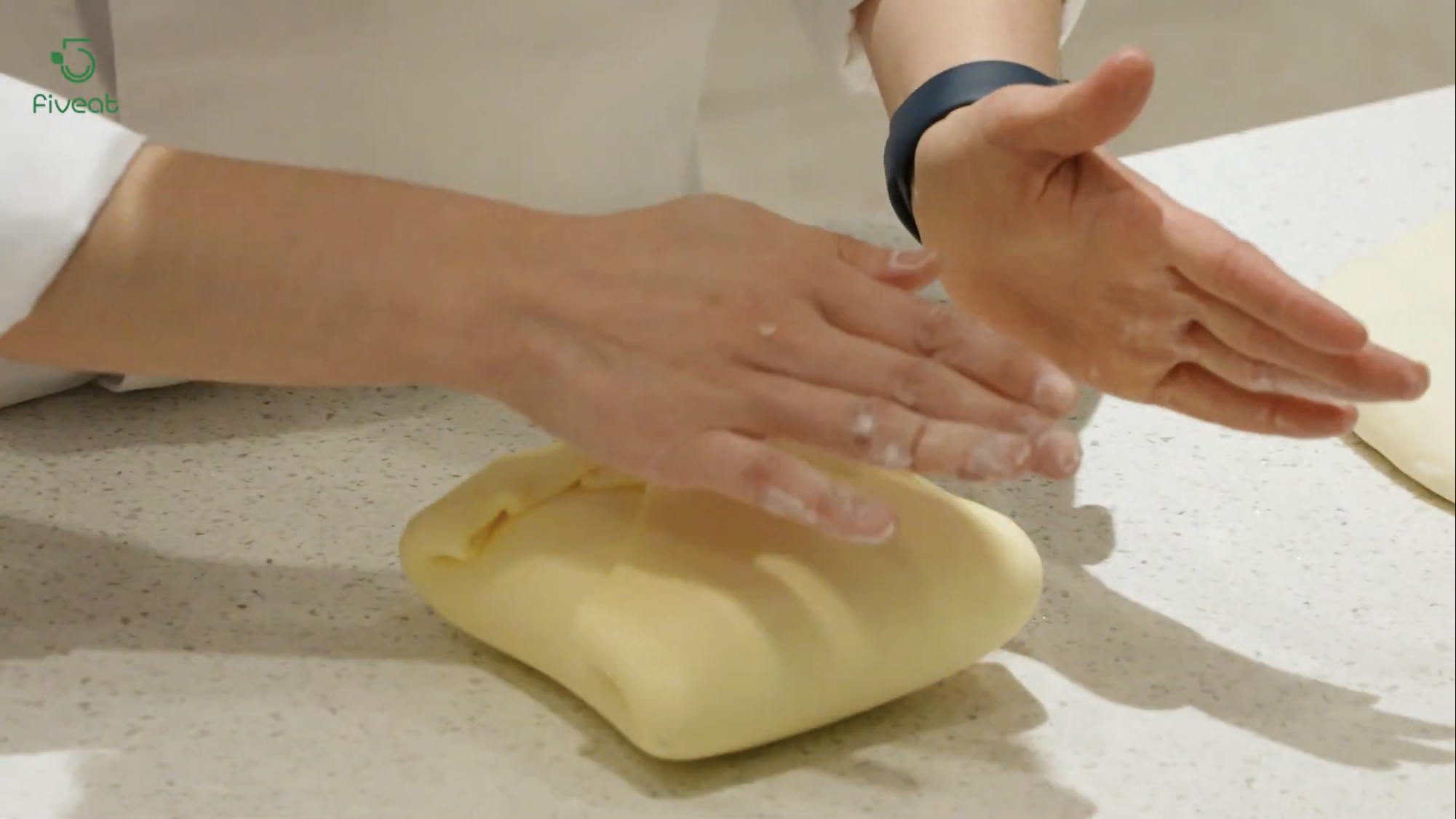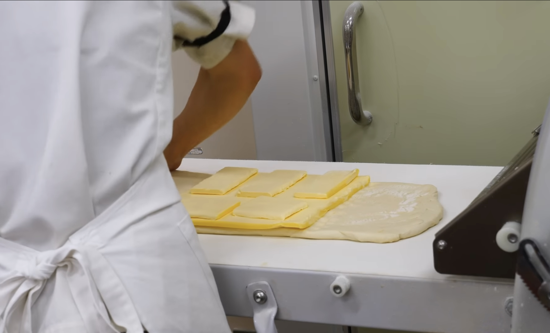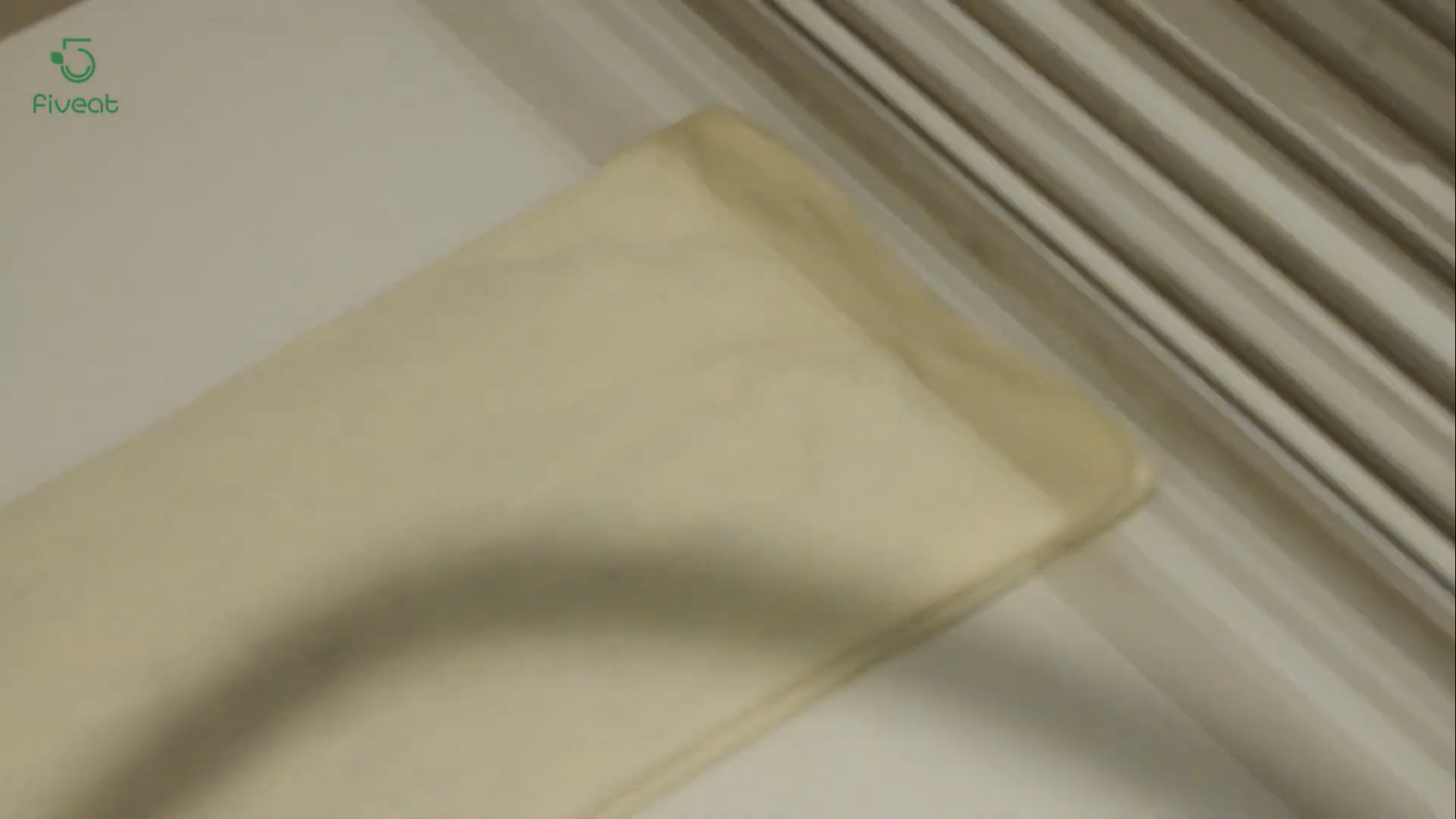기계로 여러번 접고 밀고 반복해서 결을 만들긔
