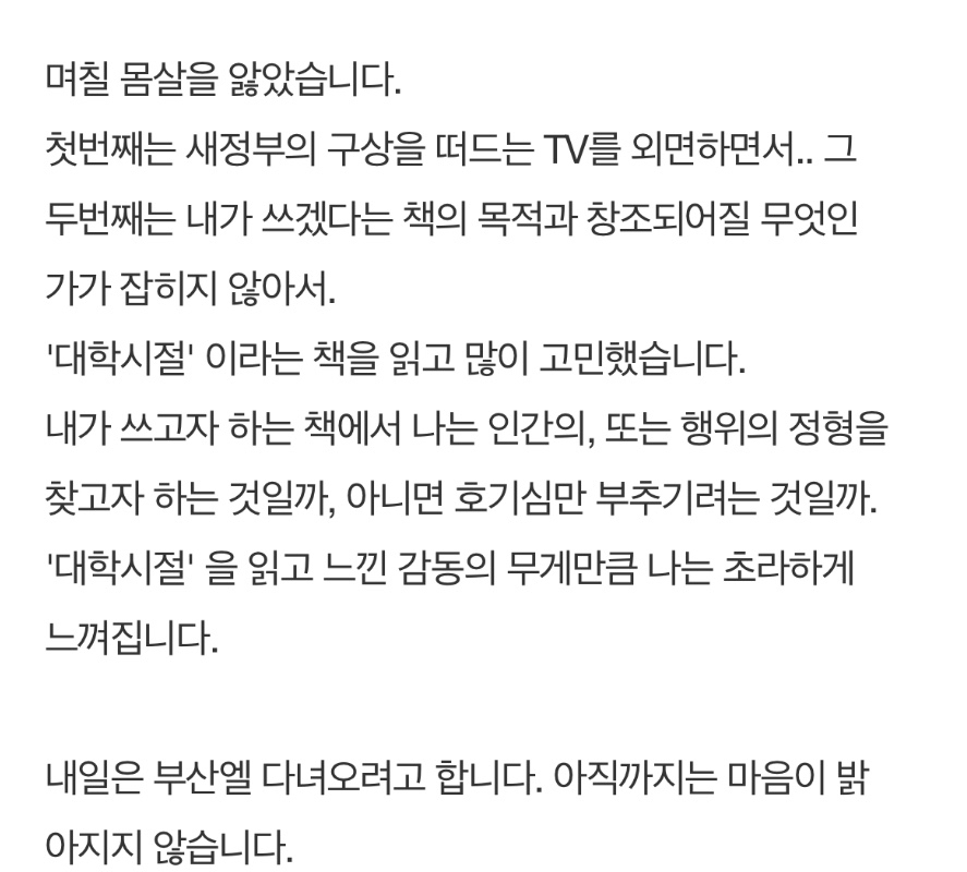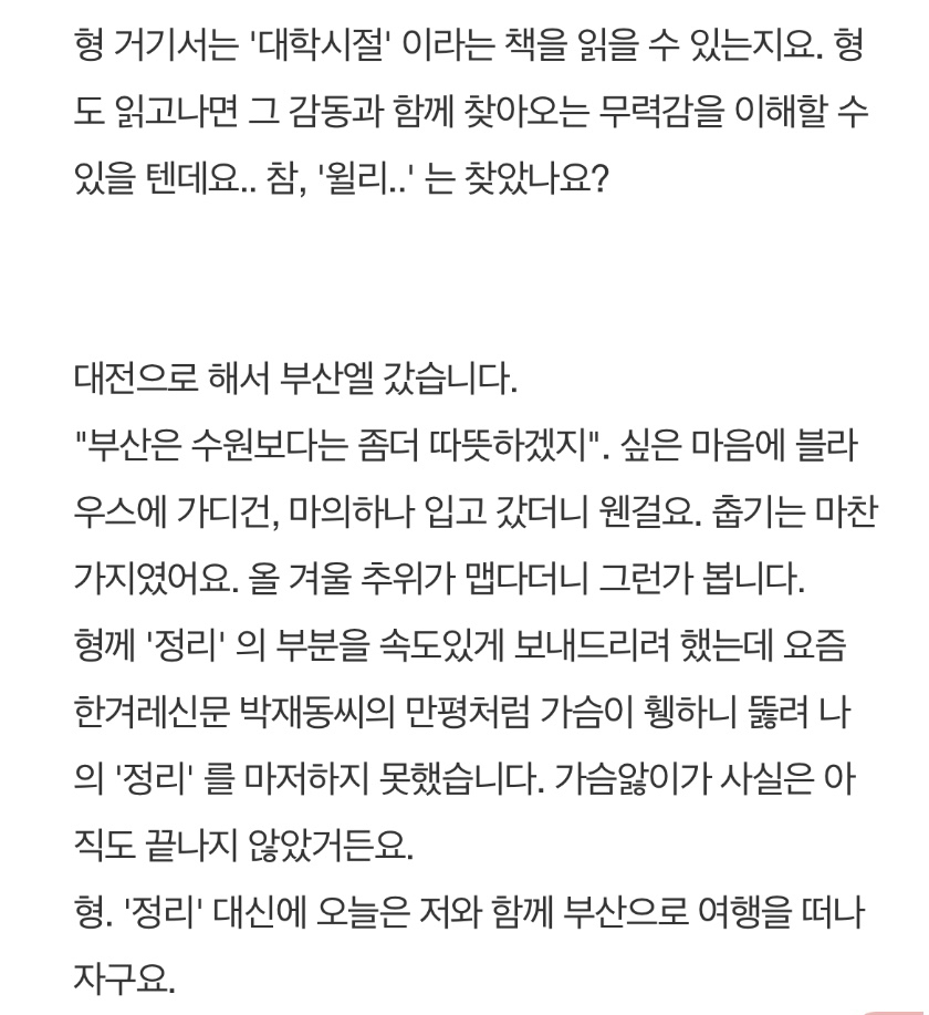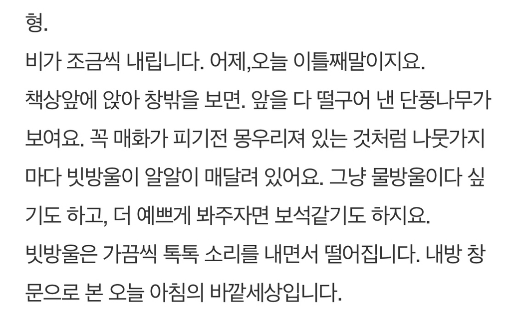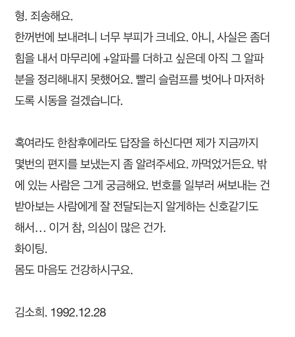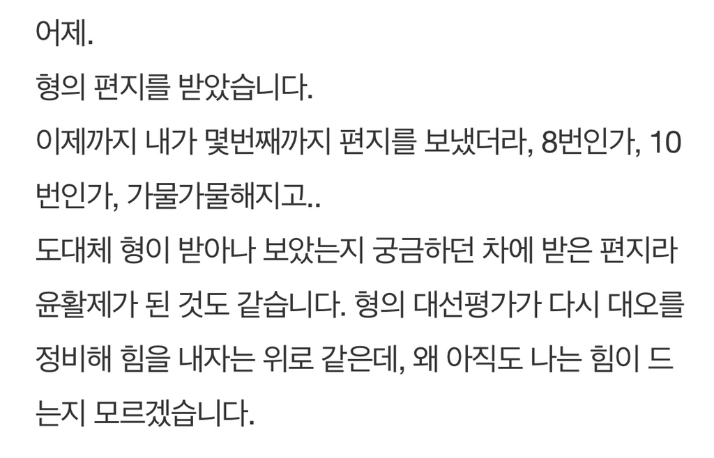 - 옥중으로 보낸 편지 중 가장 길었던 편지의 일부분