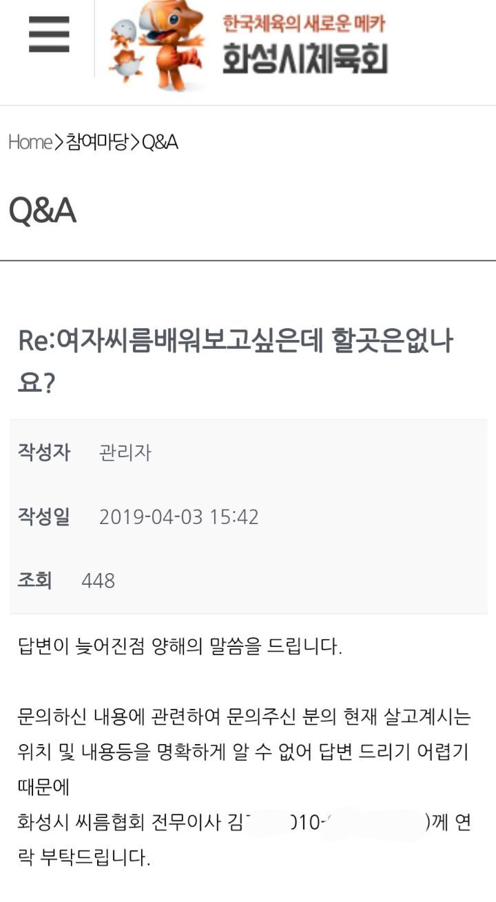 검색하다가 보니까 누군가 배우고 싶어서 지역의 체육회에 문의 했나봐