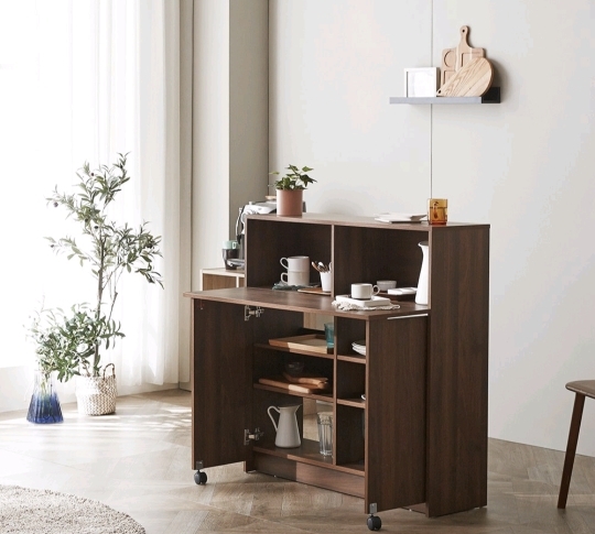밥솥, 전자렌지는 수납함에 숨겨두고 조리 좀 하고 밥 먹을땐 식탁으로 쓰고 또 낮엔 커피랑 노트북 두고 할 일 해도 너무 좋음