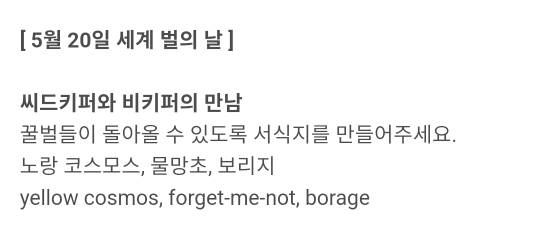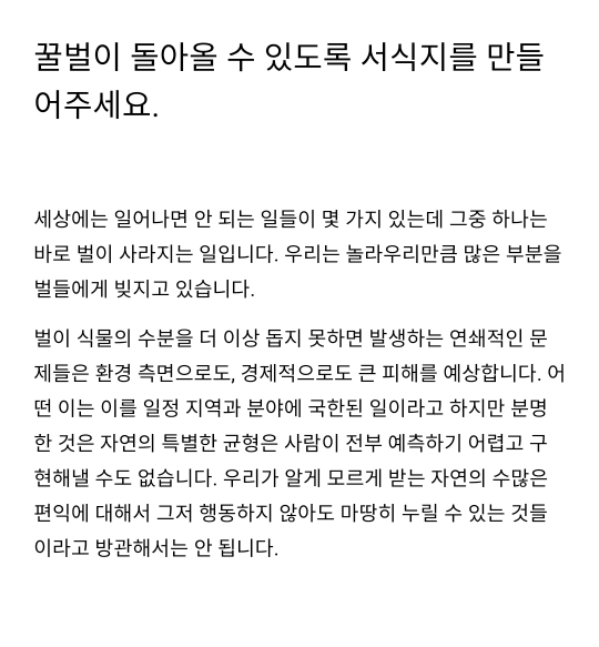 벌에게 도움이 되는 식물들을 키워보자는 뜻으로 쓴 것