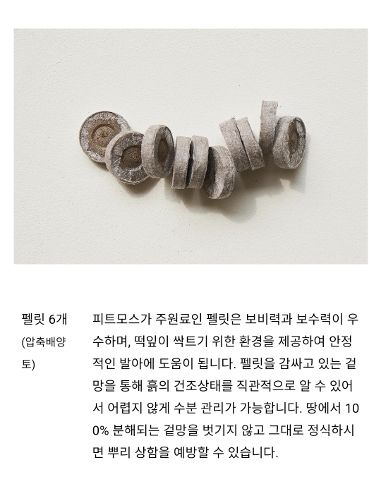 펠릿 1개에 새싹 또는 씨앗을 심고