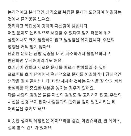 근데 내 현재 성격이랑 닮은 놈들 다 성격 이상한 걸로 유명한 놈들이잖아요 ㅡㅡ