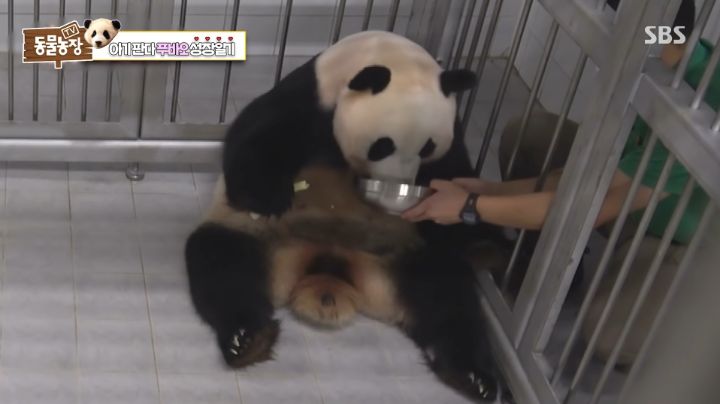푸바오 출산 후 가장 예민할때인데 사육사님이 애기 푸바오 검진을 위해 데려가도 안심해하고 본인은 육아로 못먹던 밥을 먹음