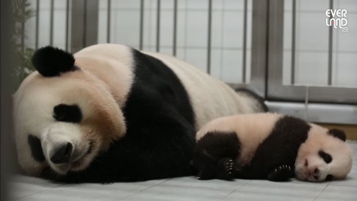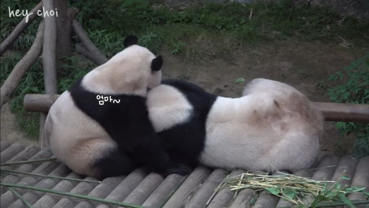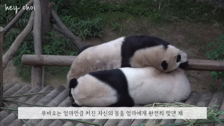 판다는 원래 독립적인 동물이라 2년이 되면 부모 곁을 떠나 따로 살게 되는데 아이바오는 모성애가 유달리도 엄청 커서 푸바오를 2년 더 넘게 품에 안고 지낸 케이스라고 함