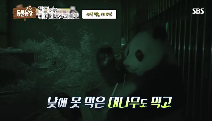 아침에 밥도 못먹었던 아이바오는 사육사님 옆에서 폭풍야식을 시전..