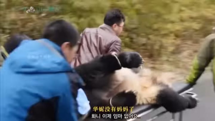그래서 다른 판다랑 사육사 손에서 중국 판다유치원에서 생활
