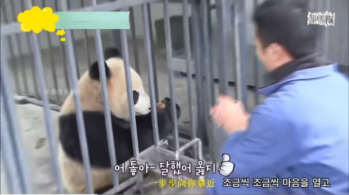 이런 아이바오와 러바오를 데려오기 전 친해지기 위해 지금 푸바오 할부지로 유명하신 강철원 사육사님이 직접 중국으로 가 아이바오와 러바오와 친해지는 시간을 가짐
