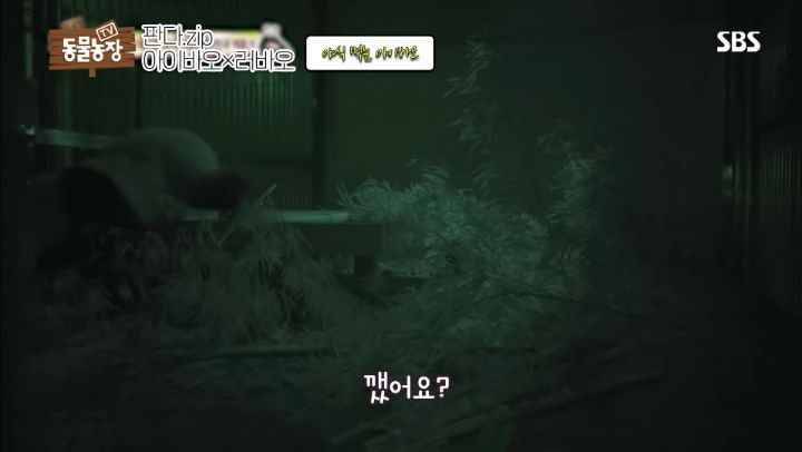 에버랜드에서 처음 보내는 첫날 밤 아이바오는 불안해하며 적응을 못함..이 먹보공주가 하루종일 대나무도 안먹고 잠을 못자고 뒤척임