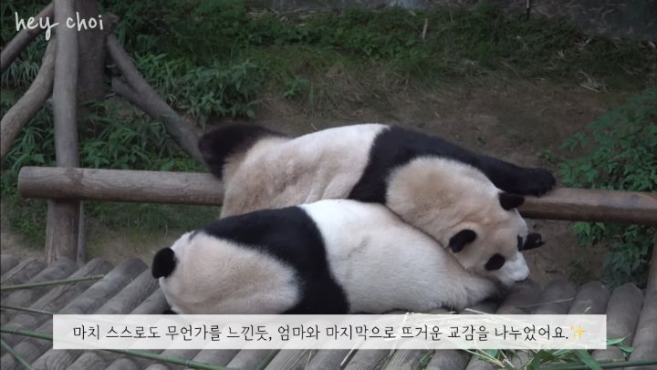 둘이 마지막으로 함께하는 날 푸바오가 아는지 엄마한테 안기고 어리광을 피움