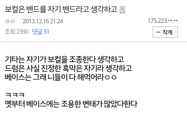 락앤롤 밴드하는 나는 그저 이걸 소리쳐 부를뿐