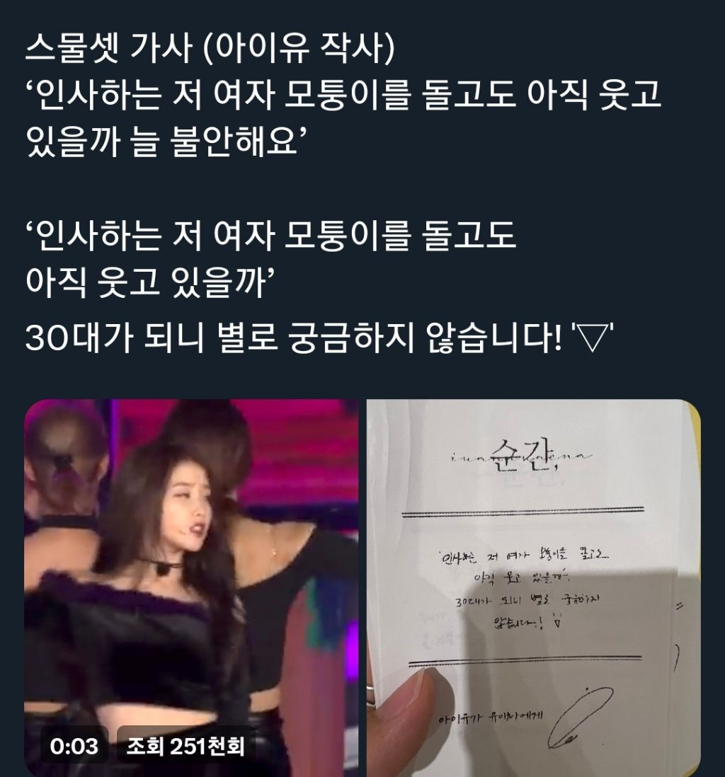 아이유가 저렇게 말해줘서 30대가 기대된다 or