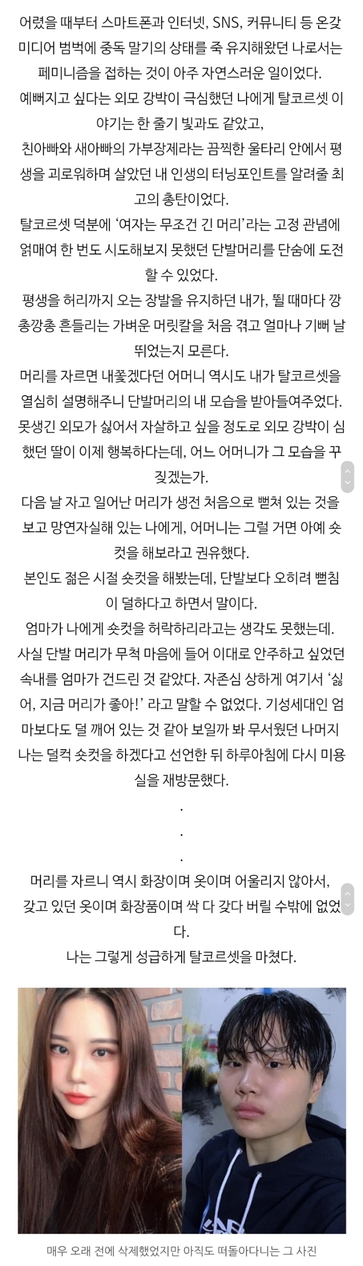 성급하게 탈코르셋을 했고….탈코르셋을 전파했고…
