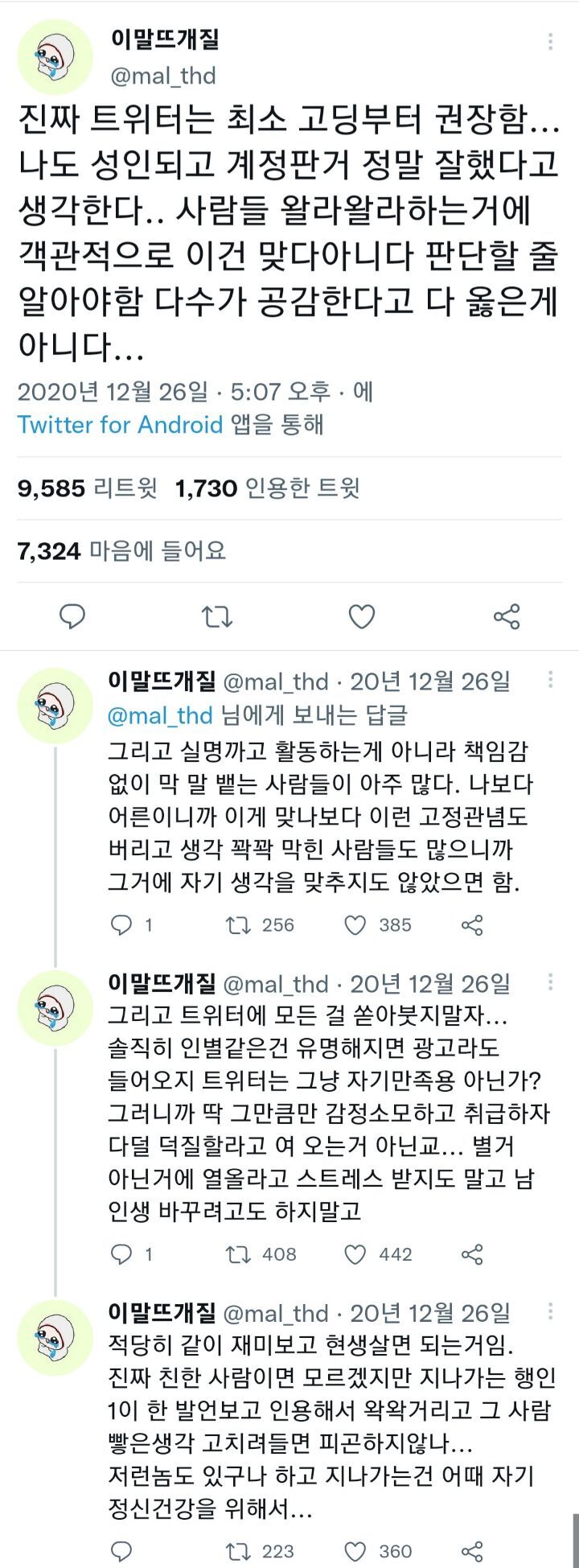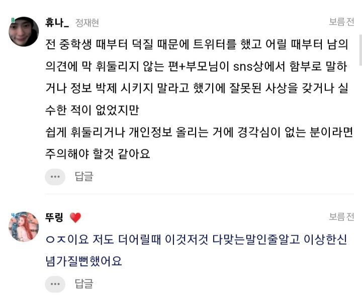 트위터뿐만 아니라 커뮤에도 해당되는 말이라고 생각함