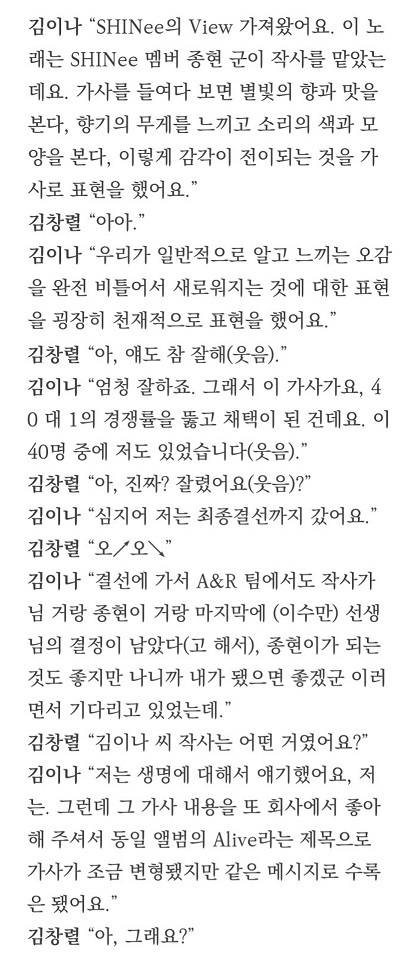 작사가 김이나를 포함 40대 1의 경쟁률을 뚫고 View 작사