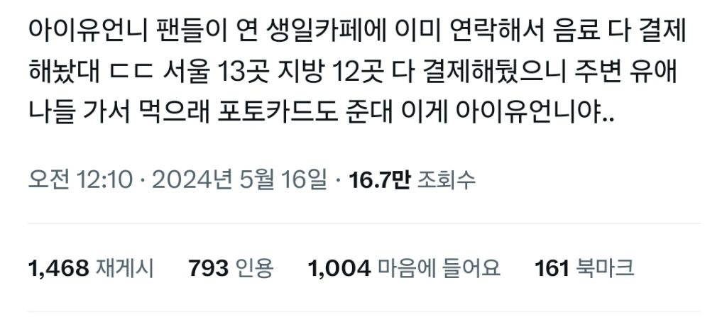작성시간 24.07.03 돈을 많이버는만큼 더욱 더 많이 사회에 환원하는게 멋있어 정말.. 아이유 계속 롱런하자~~~!