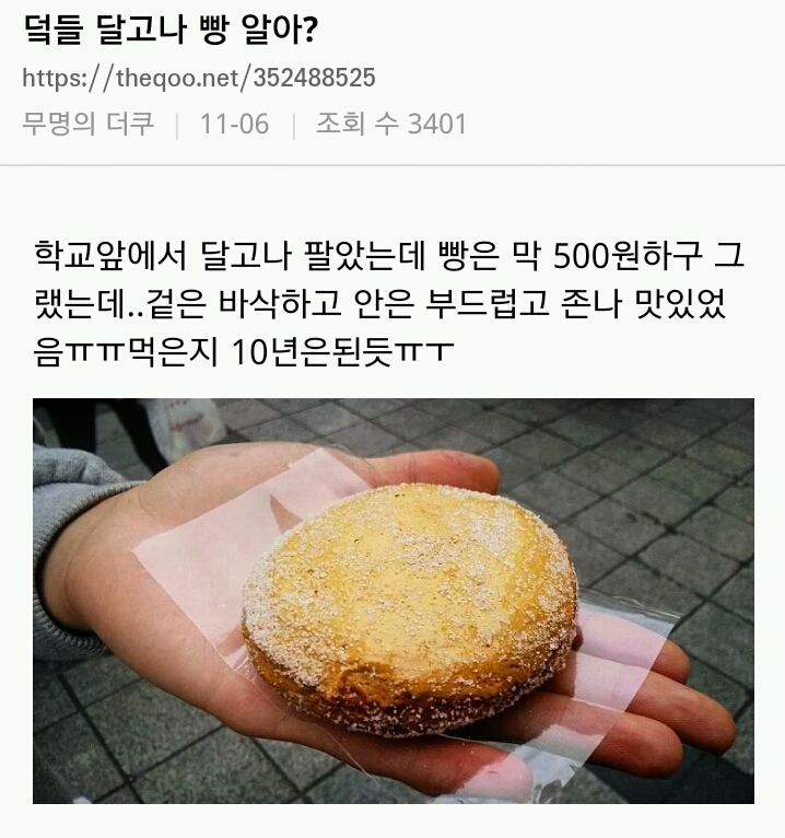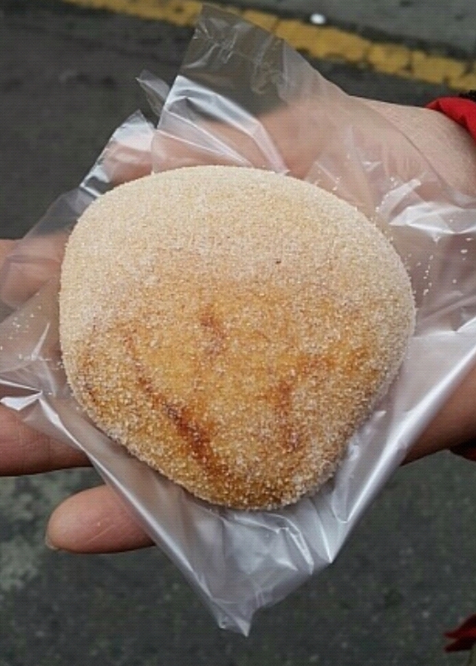 찝지 않고 반죽을 설탕에 굴리듯 둥글려서 빵처럼 만들어 주면 달고나빵이었음 ㅎ