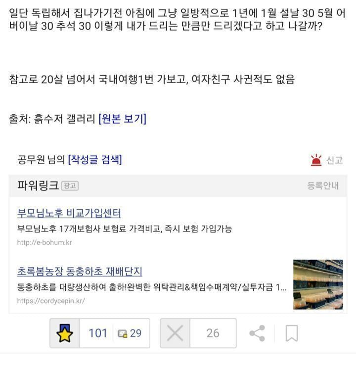 작성자내여친김안산 작성시간 22.07.22 자식이 자기 의지로 도움 드리는 거랑 돈 내놔라 하는 거랑은 다르지.. 자식한테 축하는 못해줄 망정 돈부터 달라니.. 진짜 너무하다