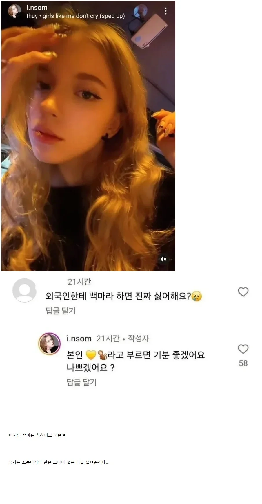 작성자까마귀 악개 작성시간 25.02.05 진짜 등신 머저리 같다 그리고 뭔 백마가 칭찬이고 좋은 동물 붙여준 거냐?? >타는< 동물이라 성희롱 의도로 붙인 거면서 씹새끼들이
