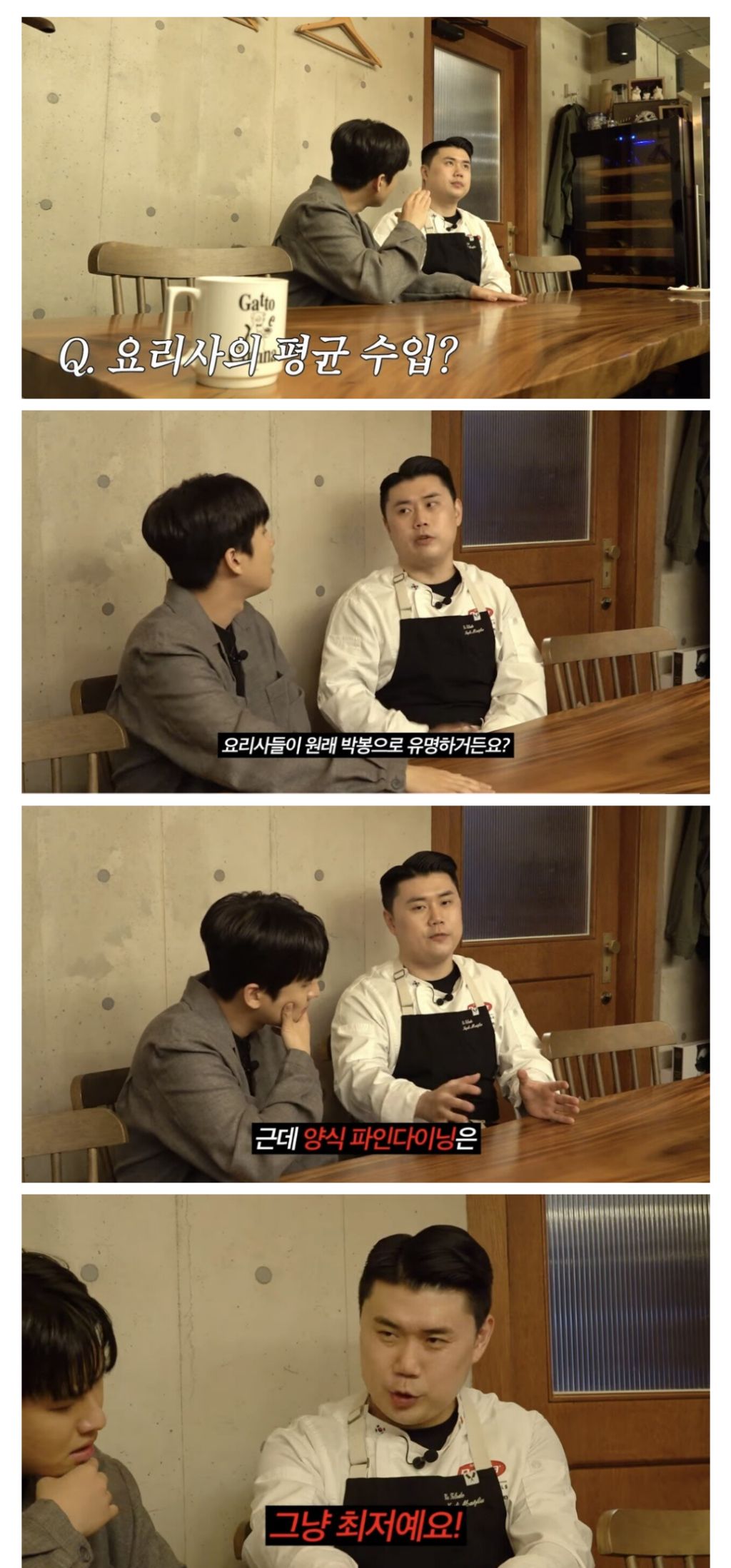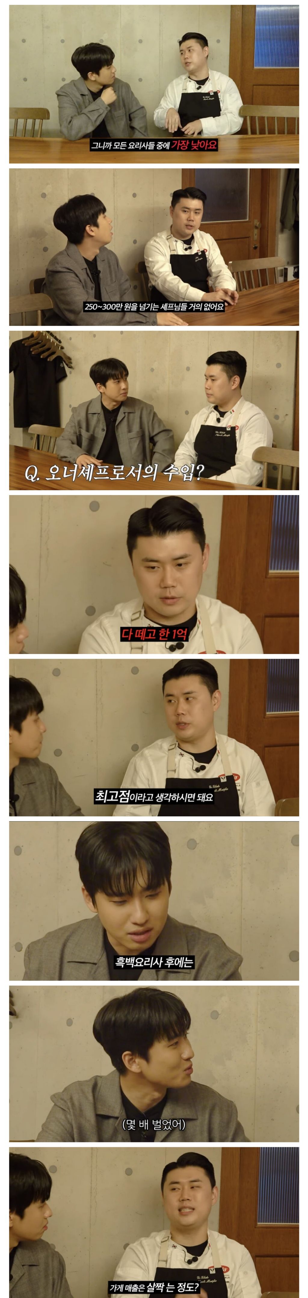 월급받는 일반 쉐프는 300 넘는 경우 잘 없음