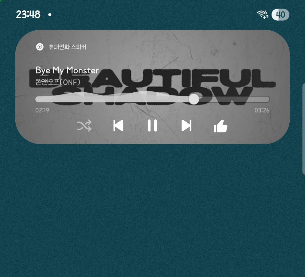 이렇게 상단표시줄에 지금 재생중인 미디어가 강제 표시 됨
