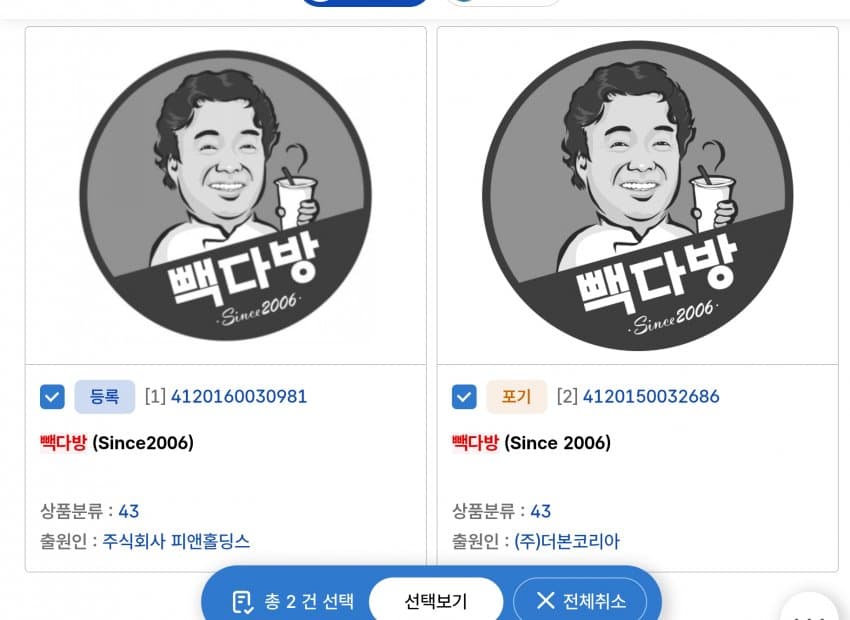 더본이 소유중이던 빽다방 상표권을 첫번째 상장을 시도하던 2018년의 2년전인 2016년에 피앤홀딩스로 옮김.
