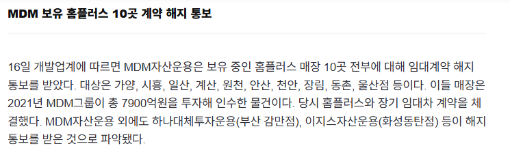 MDM 자산운용(가양, 시흥, 일산, 계산, 원천, 안산 ,천안, 장림, 동촌, 울산점)