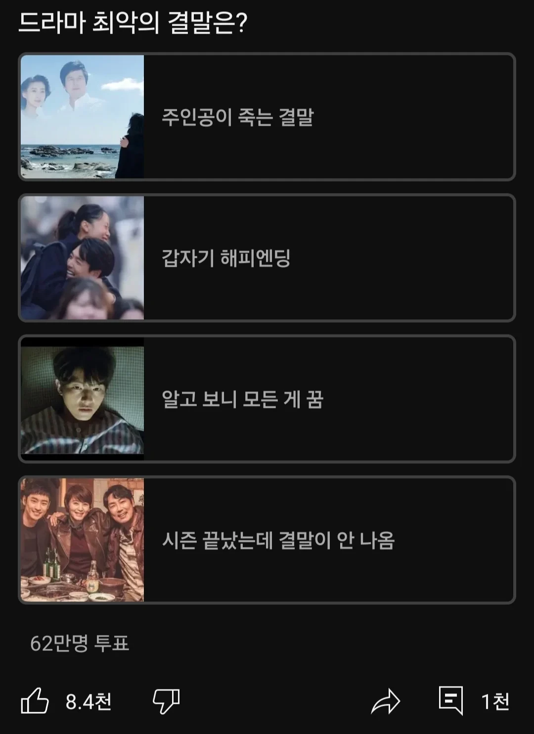 우리 동네 목욕탕 [기타]62만명이 투표한 드라마 최악의 결말은? 작성시간25.05.19|조회수5,720 목록 댓글 6 글자크기 작게가 글자크기 크게가 다음검색 현재 게시글 추가 기능 열기 북마크 공유하기 신고 센터로 신고 댓글 6 댓글 리스트 작성시간 25.05.19 123은 그래도 엔딩이라도 났지 4는 걍 붕떴어 ㅅㅂ 작성시간 25.05.19 3은 시벌 작성시간 25.05.19 3은 진짜 허무해... 작성시간 25.05.19 4....뒷시즌이 없어지면 나는 아무것도 할수가 없게 되는거야.... 작성시간 25.05.19 꿈 진짜 디져 카페 방문해 더 많은 댓글 만나기!