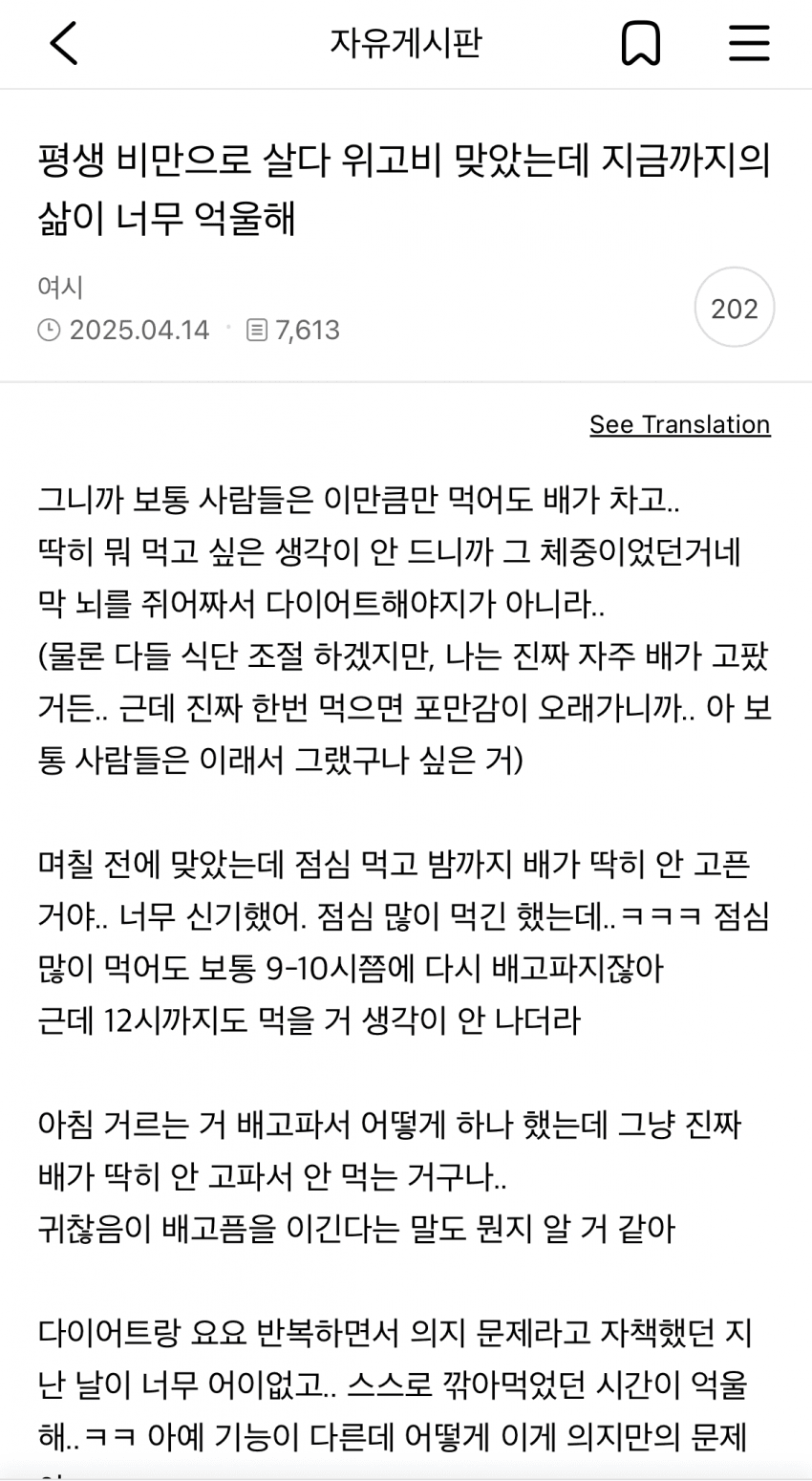 작성시간 25.05.27 하루 세끼 먹는걸로 어렸을때부터 형성된 우리나라 사람 식습관으론 점심 배부르게 먹어도 7시쯤 되면 배고픈게 당연함(누워만 있던게 아니라면) 밤까지 배가 안 고프단게 오히려 더 이상한데… 그 마음은 어느정도 이해되지만 위고비 효과를 마치 ADHD 약 효능을 보듯 여기는거 같아서 좀 주의해야할 듯