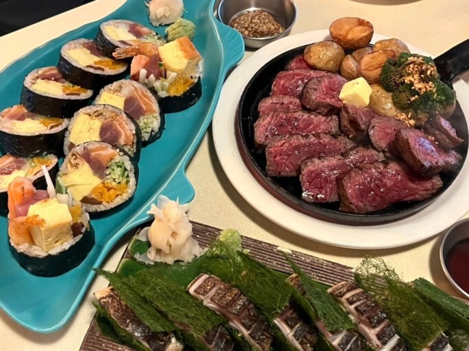 난 고등어봉초밥이랑 스테이크 맛있었규