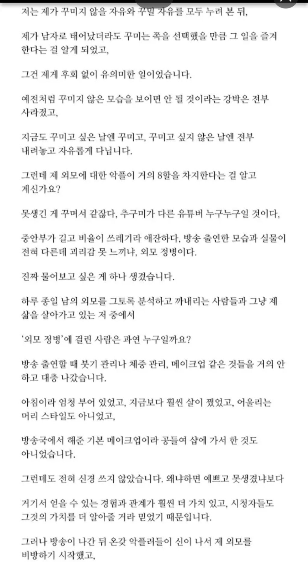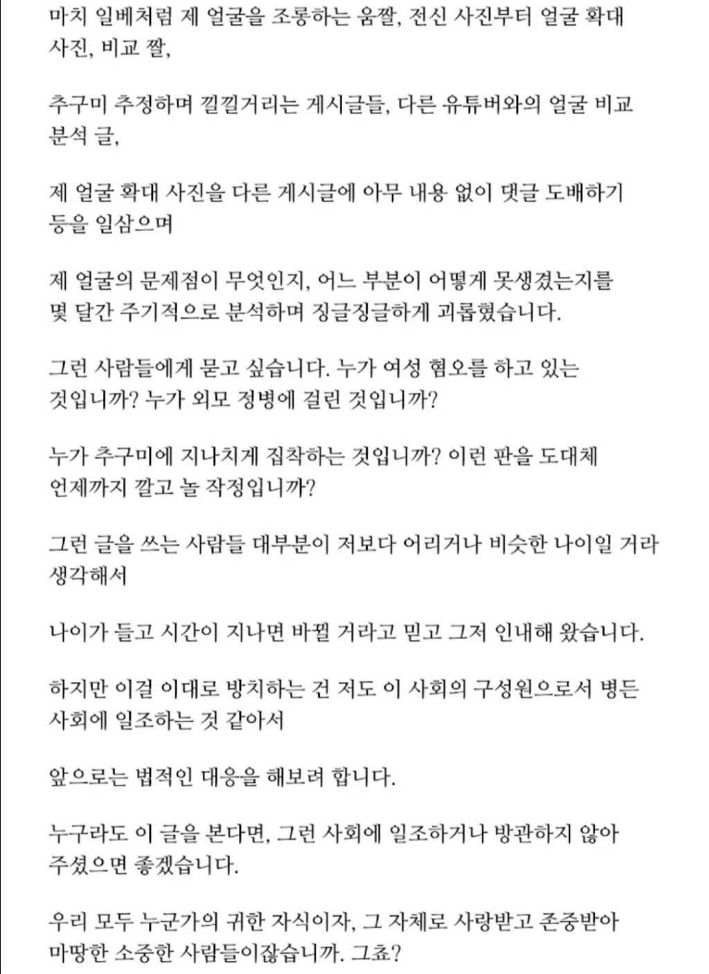 작성시간 25.06.19 뭔 얘긴지 몰라서 다 찾아보고 왔는데 외모 악플은 고소 잘 하셨음 좋겠네