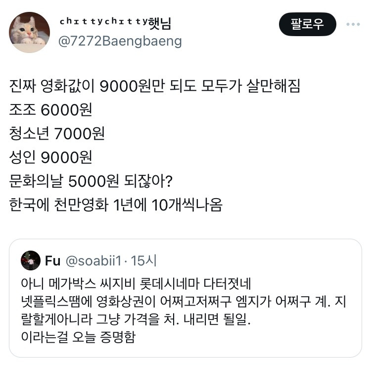 작성시간 25.07.26 맞아 요즘 티켓값 너무 비싸!!!