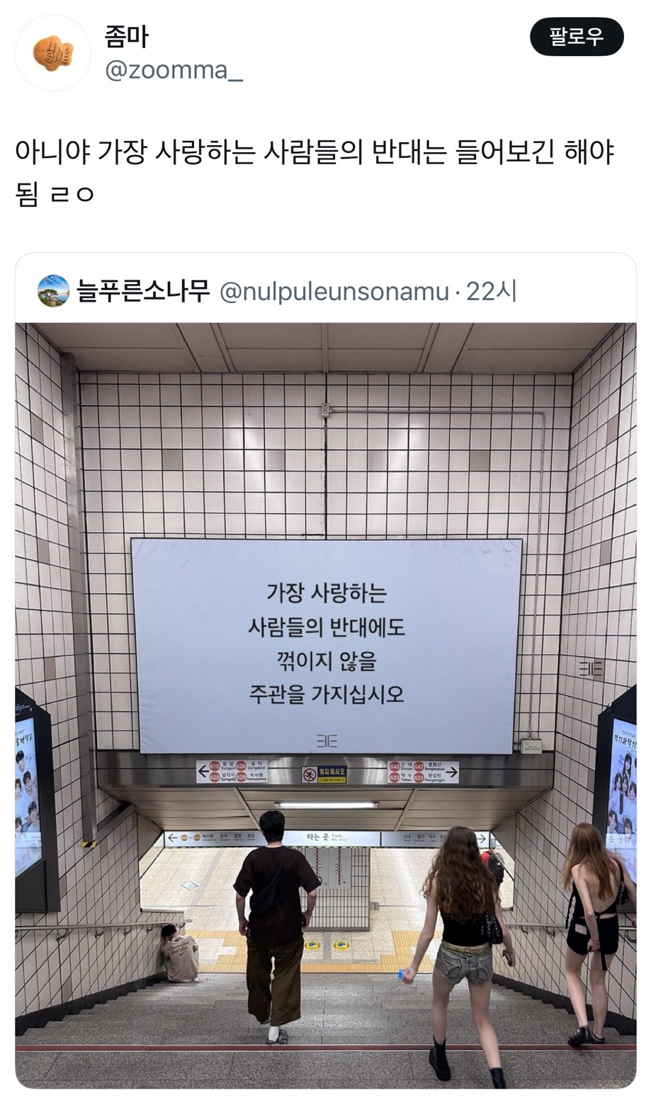 작성시간 25.07.27 들어보긴 하는데 꺾이지 않는 주관이면 좋은 건가
