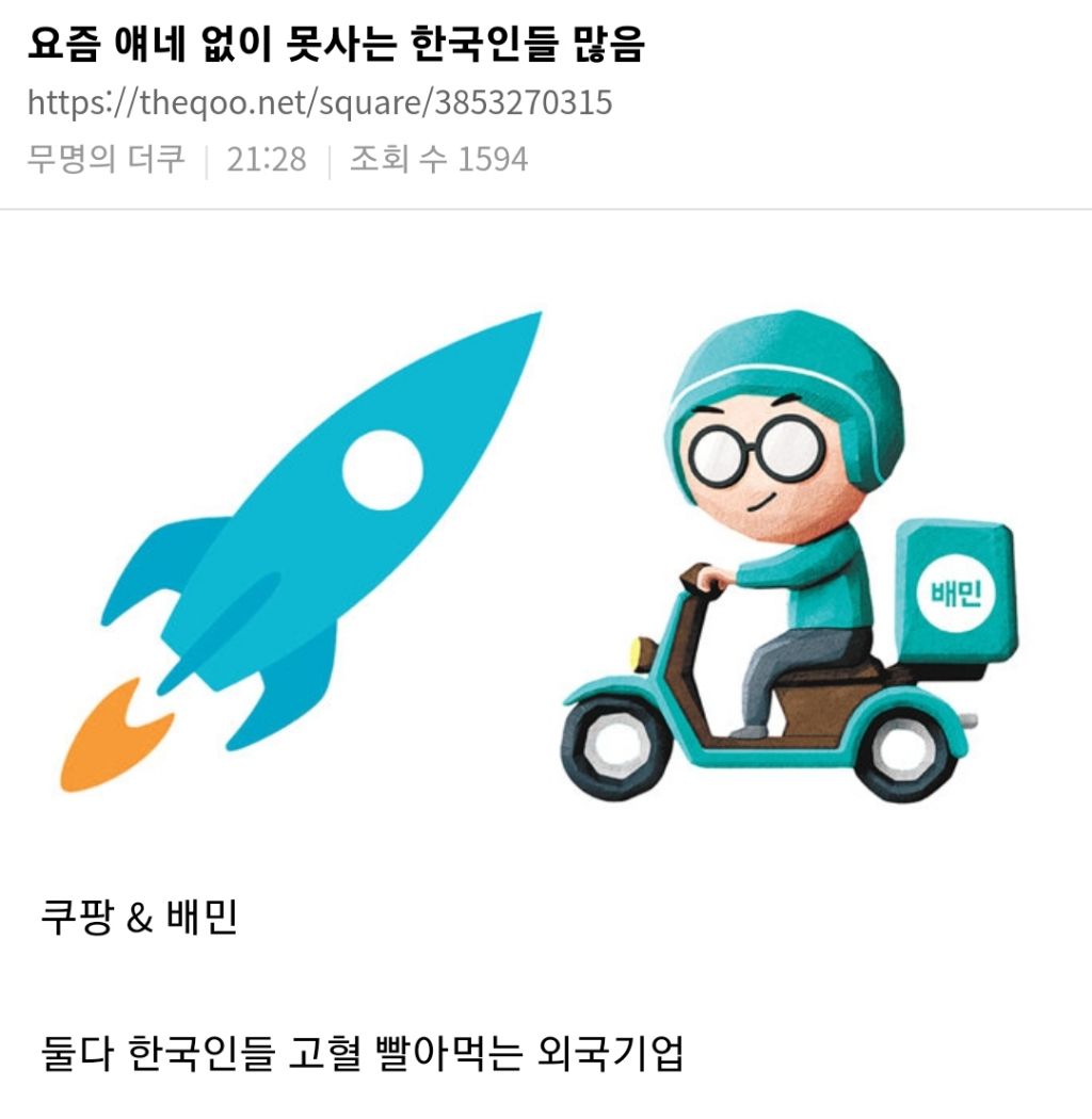 작성시간 25.08.02 쿠팡은 노동환경 너무 별로라고해서 안 쓰고 배민은 땡겨요나 먹깨비에 없는 가게 시킬때만 쓰는중...