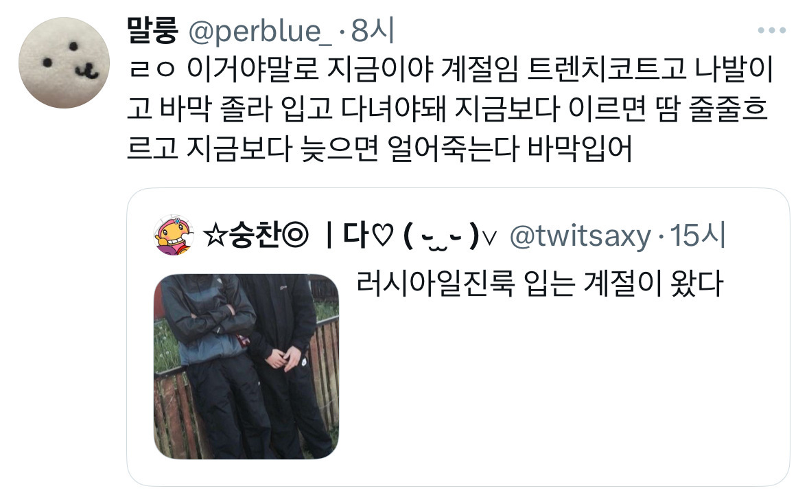 작성시간 25.09.21 발열인간은 한겨울에도 바막입고 다니지롱~~~ 크킄ㅋ