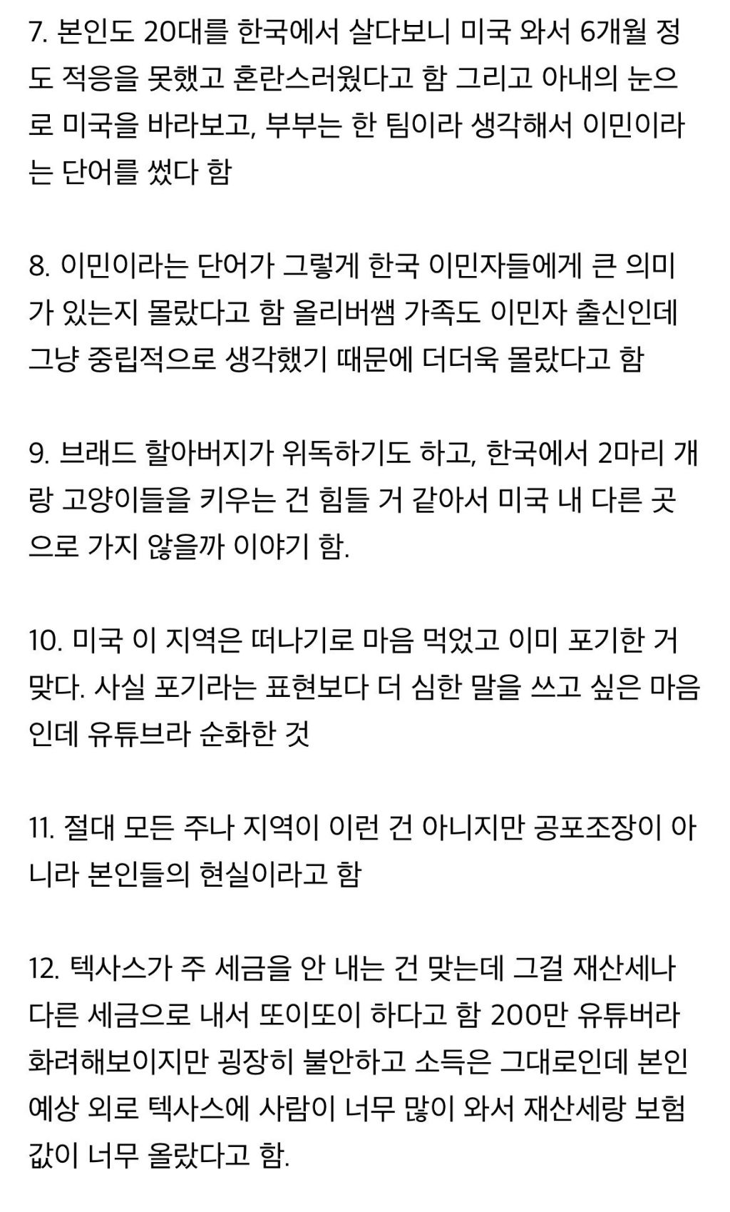 그리고 저 사람이 ㄹㅇ 뜬금없이 '여기는 글러먹었습니다! 개같은 나라!' 한게 아니라 나름 이유도 다 있더만... 그냥 개인의 주장이라 생각하고 불만 있으면 정중하게 댓 남기면 될 것이지 과열되서 트집잡듯이 미친듯 패는건 좀 황당함... 이런식으로나 황당한 이유로 미국 까는 유투버들 많던데 이 사람만...?