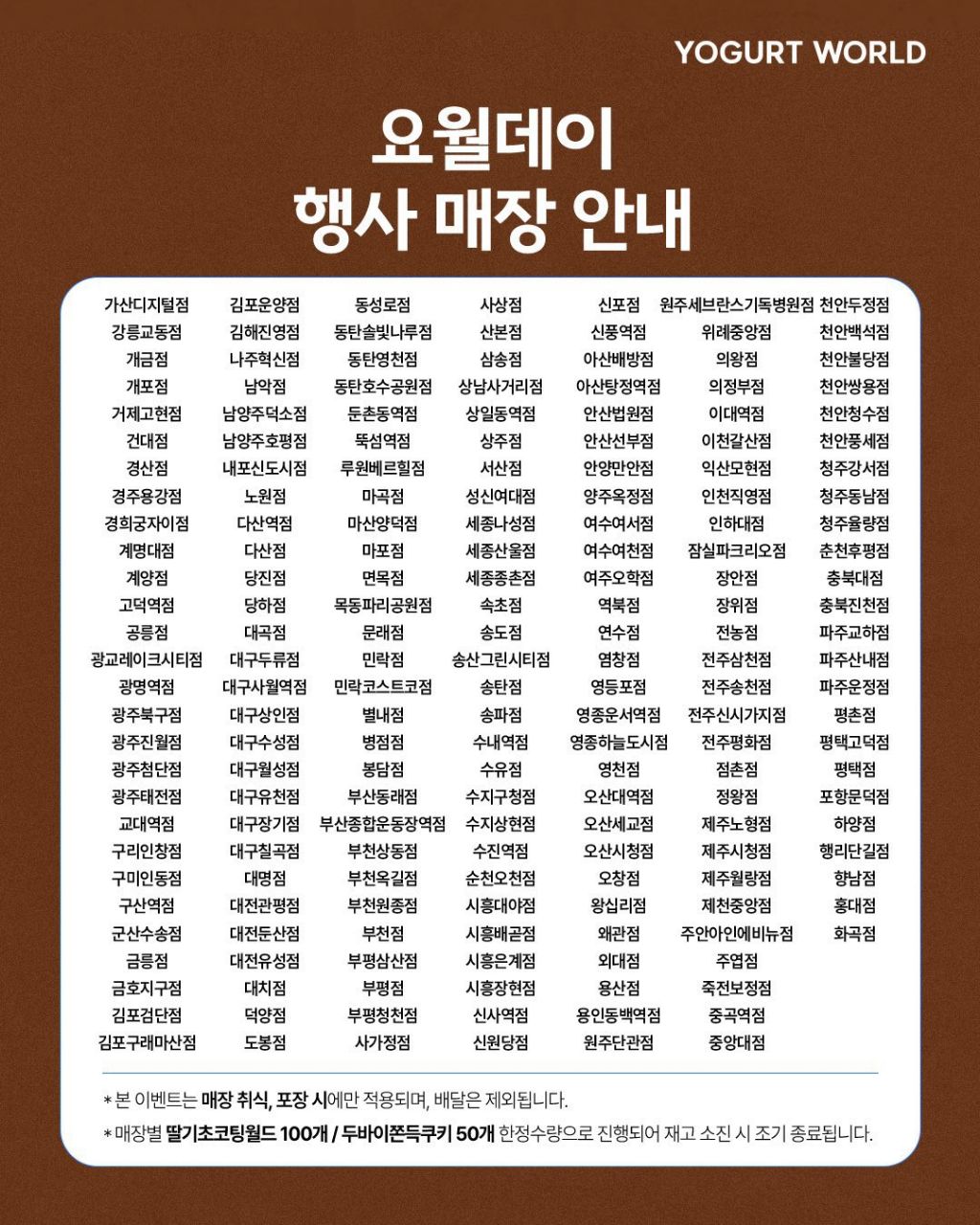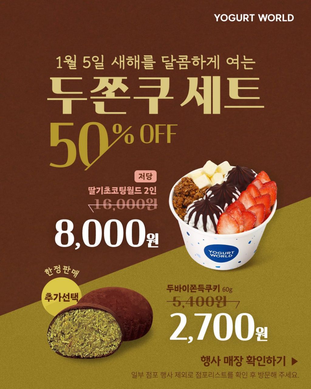 [기타]1/5 요거트 월드 두쫀쿠 할인행사 작성자오타쿠|작성시간25.12.31|조회수4,217 목록 댓글 9 글자크기 작게가 글자크기 크게가 《 우리 동네 목욕탕 / 닉네임 》 50개 한정 뭐야 더풀어 다음검색 현재 게시글 추가 기능 열기 북마크 공유하기 신고 센터로 신고 댓글 댓글 9 댓글쓰기 답글쓰기 댓글 리스트 작성자착착착 | 작성시간 25.12.31 new 아싸 울집앞에 잇다 작성자큰 물결 | 작성시간 25.12.31 new 미친!!!! 우리 동네 있다!!!!!!!!!!!!! 작성자서비웨이 | 작성시간 25.12.31 new 여기 두쫀쿠 맛있어? 답댓글 작성자서비웨이 | 작성시간 25.12.31 new 아 배달은 안되는구나.. 못먹겠다ㅠ 작성자Oxblood | 작성시간 25.12.31 new 50개 절대 못하겠다 댓글 전체보기
